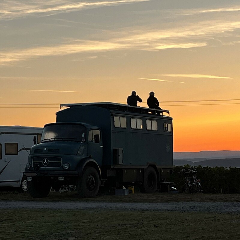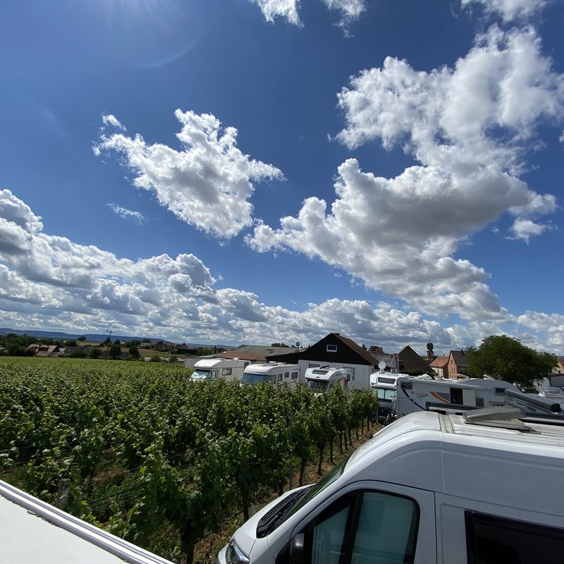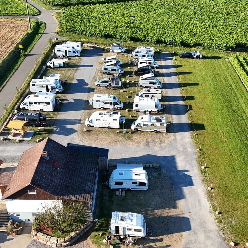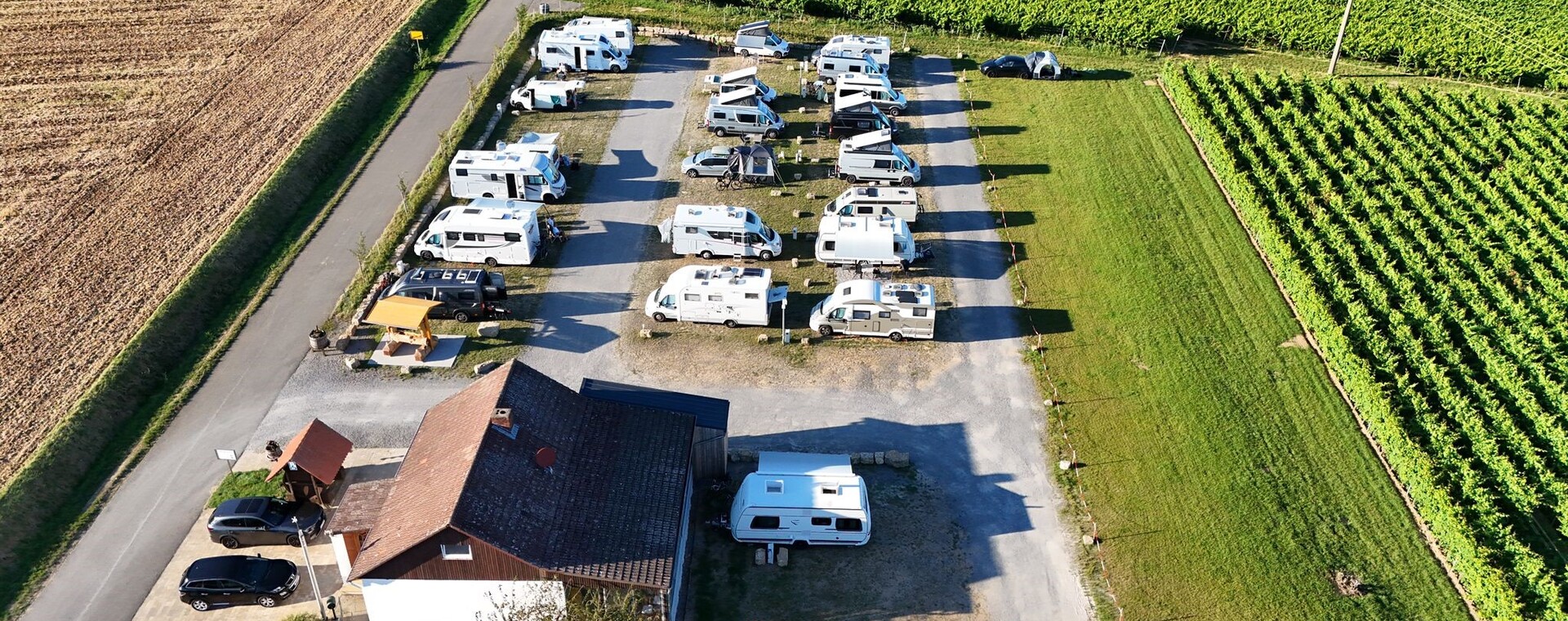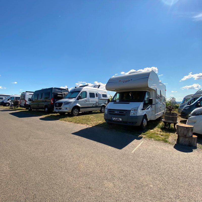 Unser Panoramastellplatz liegt direkt am Weingut, eingebettet in Rebflächen und mit einer spektakulären Aussicht von Sonnenauf- bis Sonnenuntergang.